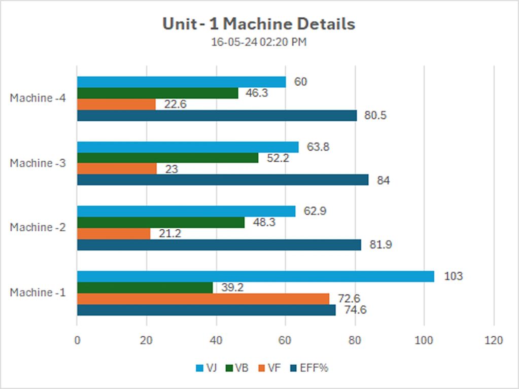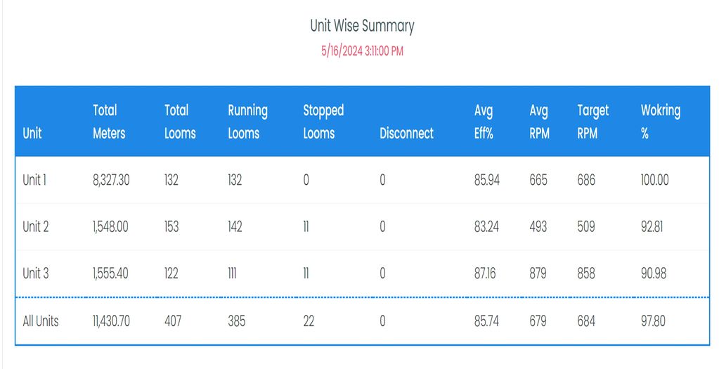 With KPIs such as speeds, efficiency, run and idle time, per spindle production etc., it enables the management to set the target, pinpoint the issues, and take timely corrective actions.