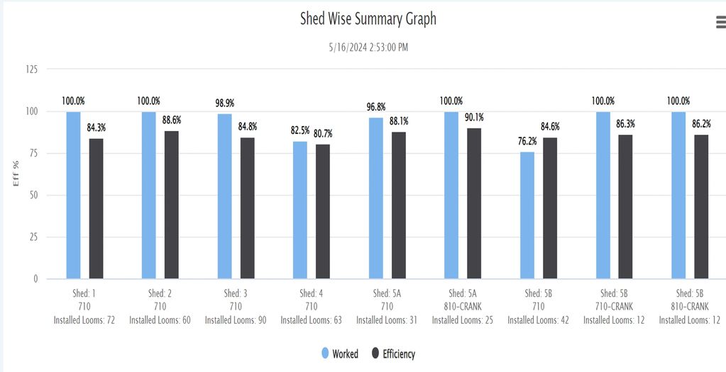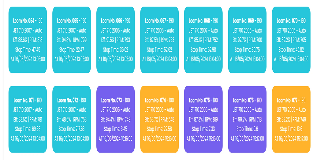 Bring each loom in your shed to your screens. Monitor the live processing, color code each loom as per the conditions - downtime, efficiency brackets etc.