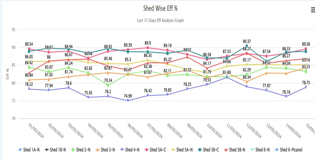 Analyze the performance trends on your production sheds, with detail and summary history of each unit, shed or machinery.