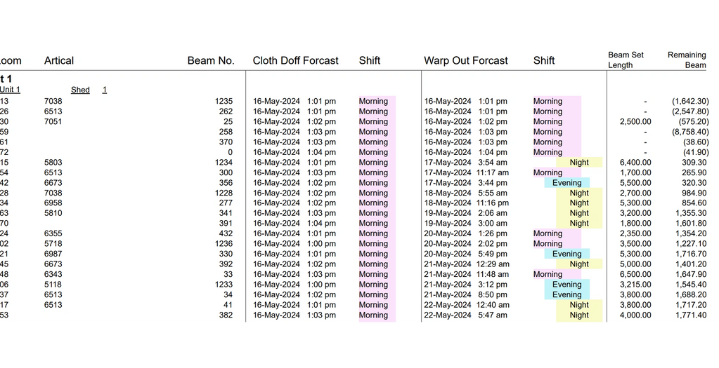 Plan ahead, gear up your departments by generating forecasting reports for doffing, warp and weft.