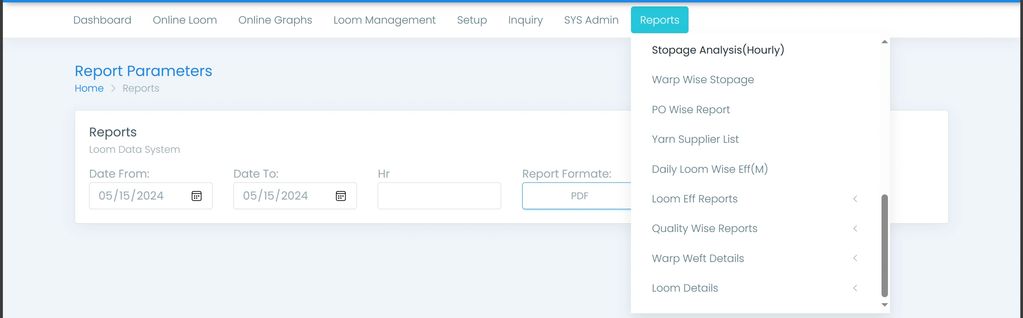 With detail, on the go, analysis of each loom performance indicator such as idle time, reasons for stoppage, speed, efficiency, total productions in meters, Loom-Sys enables not only to increase floor efficiency and productivity, but with intelligent analysis tools such as vendor efficiency, weft and warp reporting etc., it enables management to optimize their shed performance.