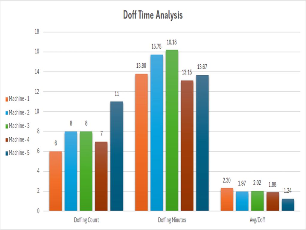 Increase productivity and efficiency by monitoring the doffing time analysis.